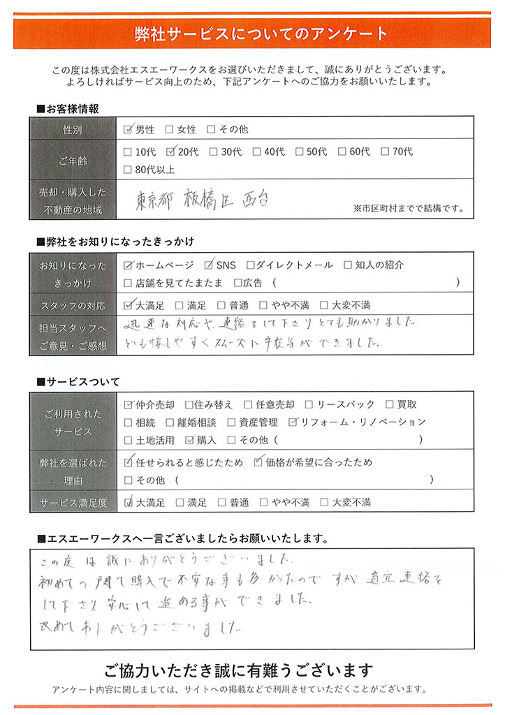 | 地域 | 板橋区 | 建物種別 | 戸建て | 職業 | 会社員 |
